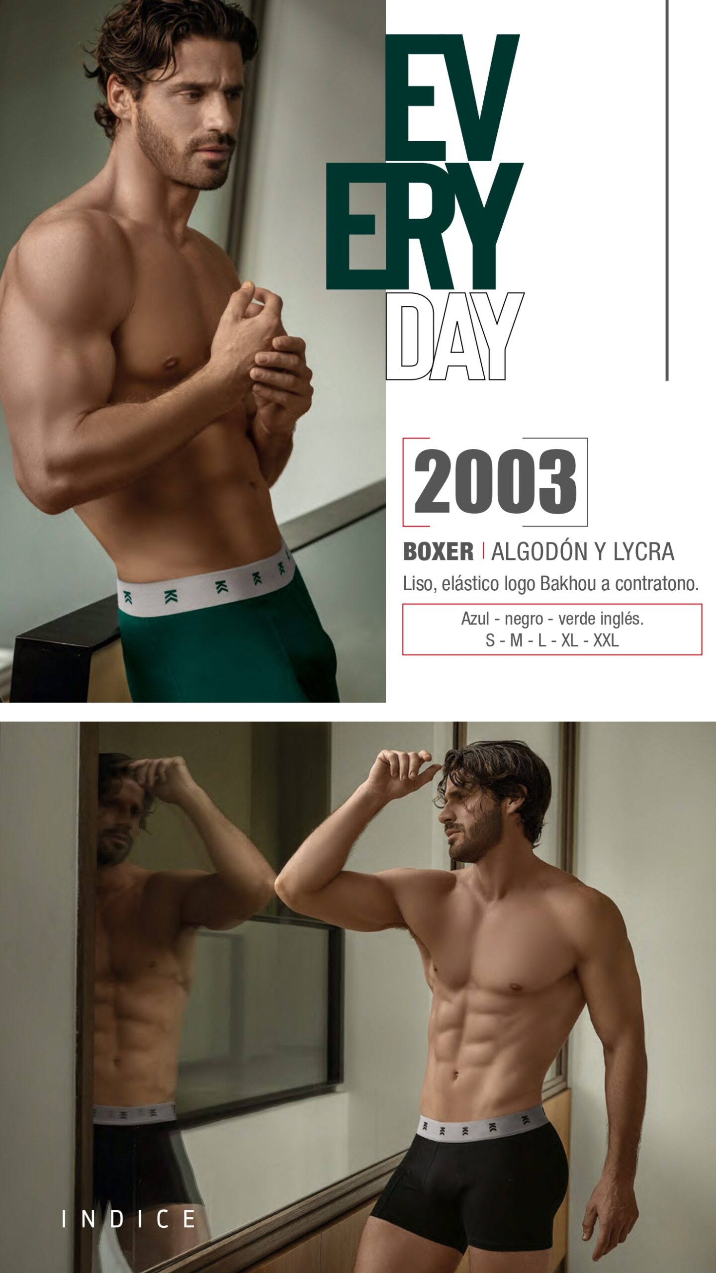 BÓXER ALGODÓN Y LYCRA. LISO CON COLLARETA. ELÁSTICO LISO. BAKHOU - Cod 2005