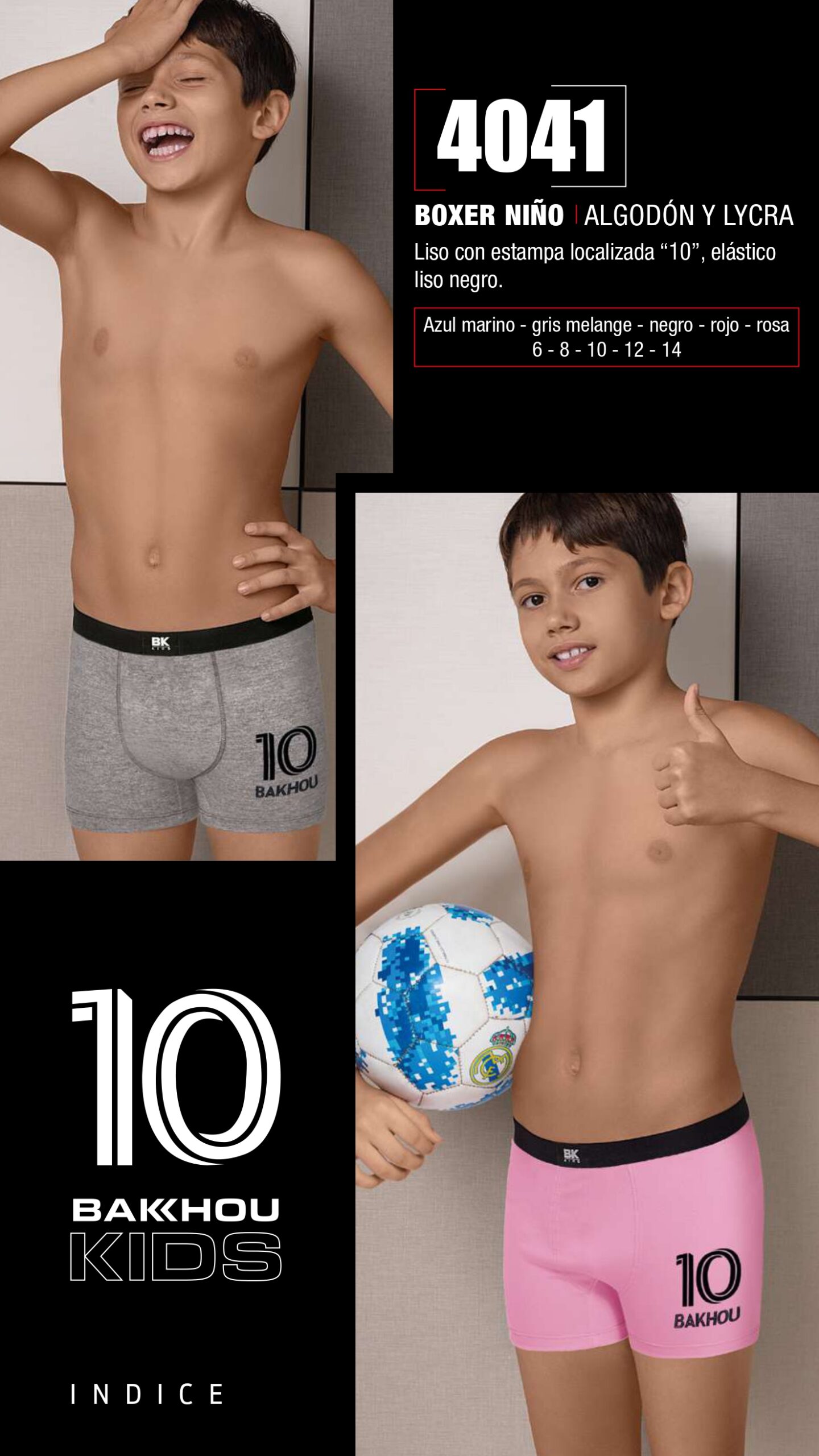 BÓXER DE NIÑO ALGODÓN Y LYCRA. LISO CON ESTAMPA LOCALIZADA BAKHOU KIDS. ELÁSTICO LISO NEGRO. BAKHOU - Cod 4022