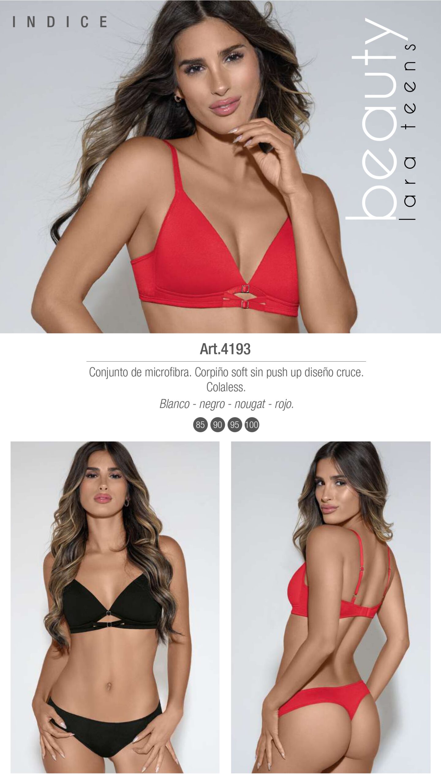 CONJUNTO DE TELA ENGOMADA. CORPINO TRIÁNGULO SOFT SIN PUSH UP. HILO DENTAL. LARA - Cod 4188