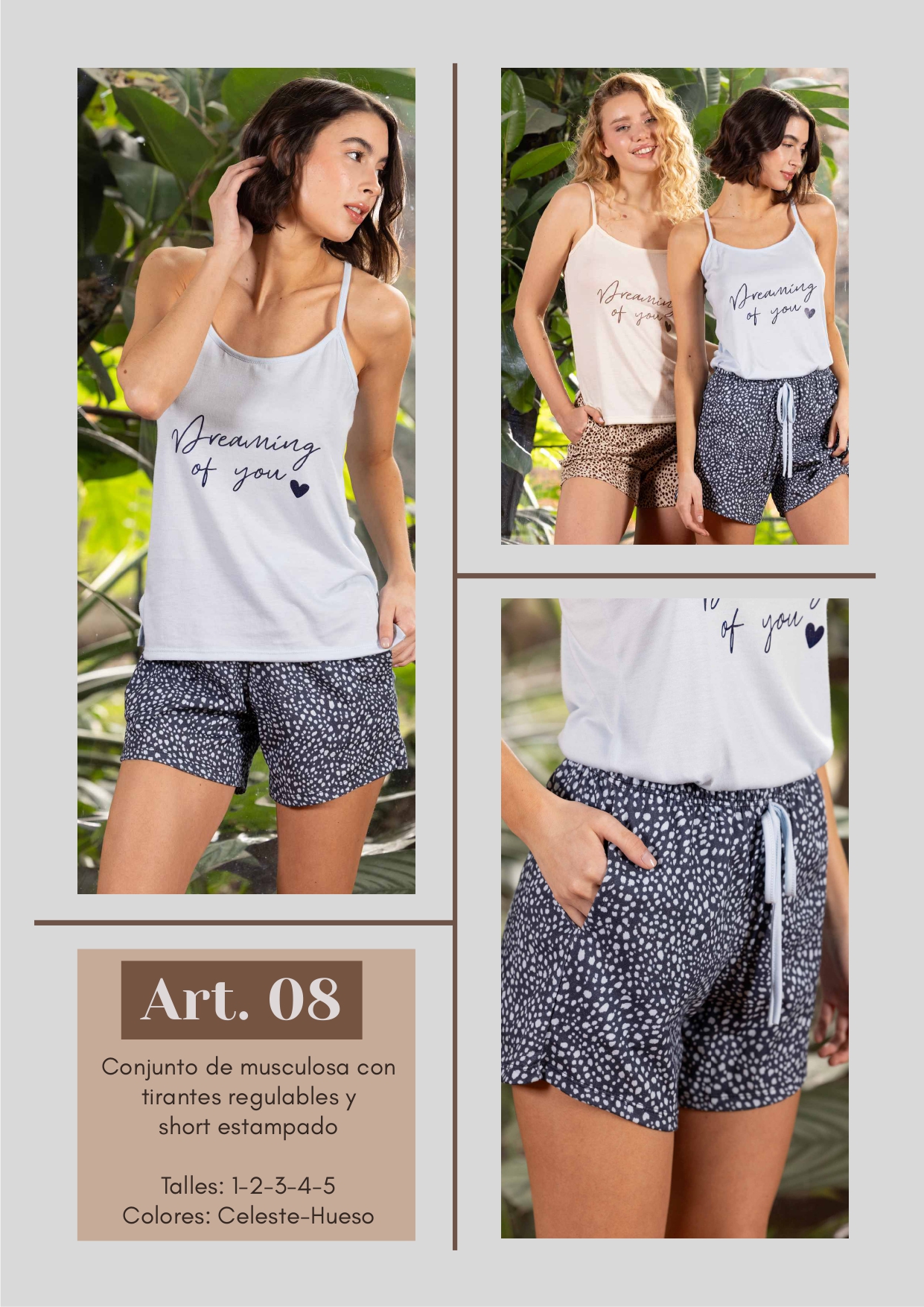 PIJAMA MUSCULOSA CON CARTERA, SHORT ESTAMPADO. JERSEY ALGODÓN LISO EMMY - Cod 6429