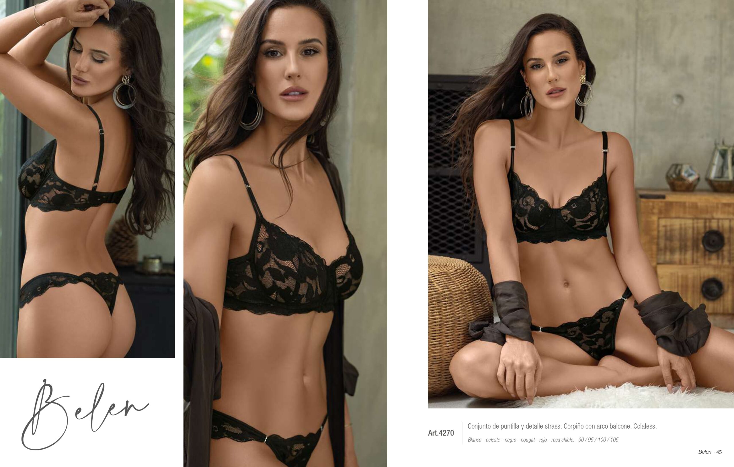 CONJUNTO DE PUNTILLA Y DETALLE STRASS. CORPIÑO CON ARCO BALCONE. COLALESS BELEN – Cod 4270