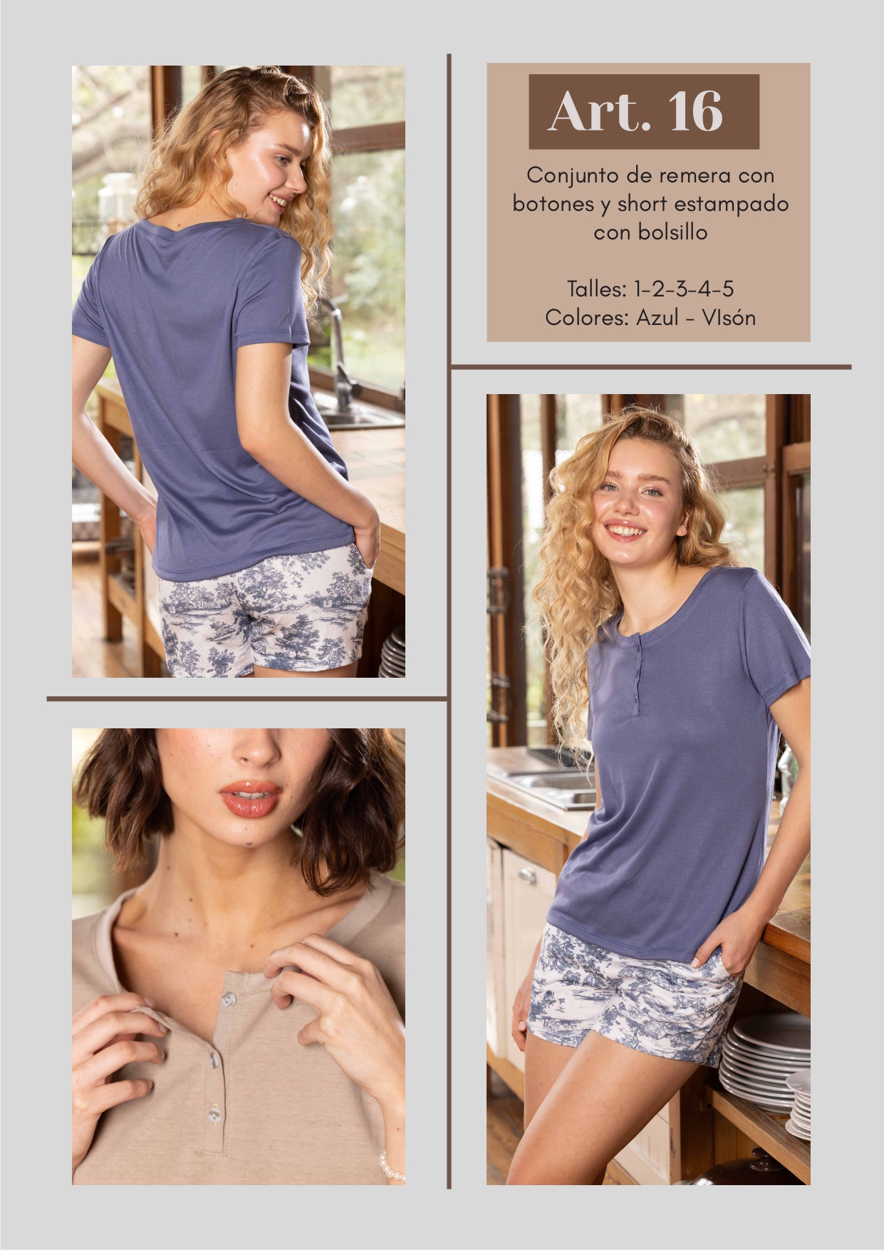 CONJUNTO DE CAMISA CON BOTONES Y SHORT ESTAMPADO FRASHE DREAMS - Cod 15