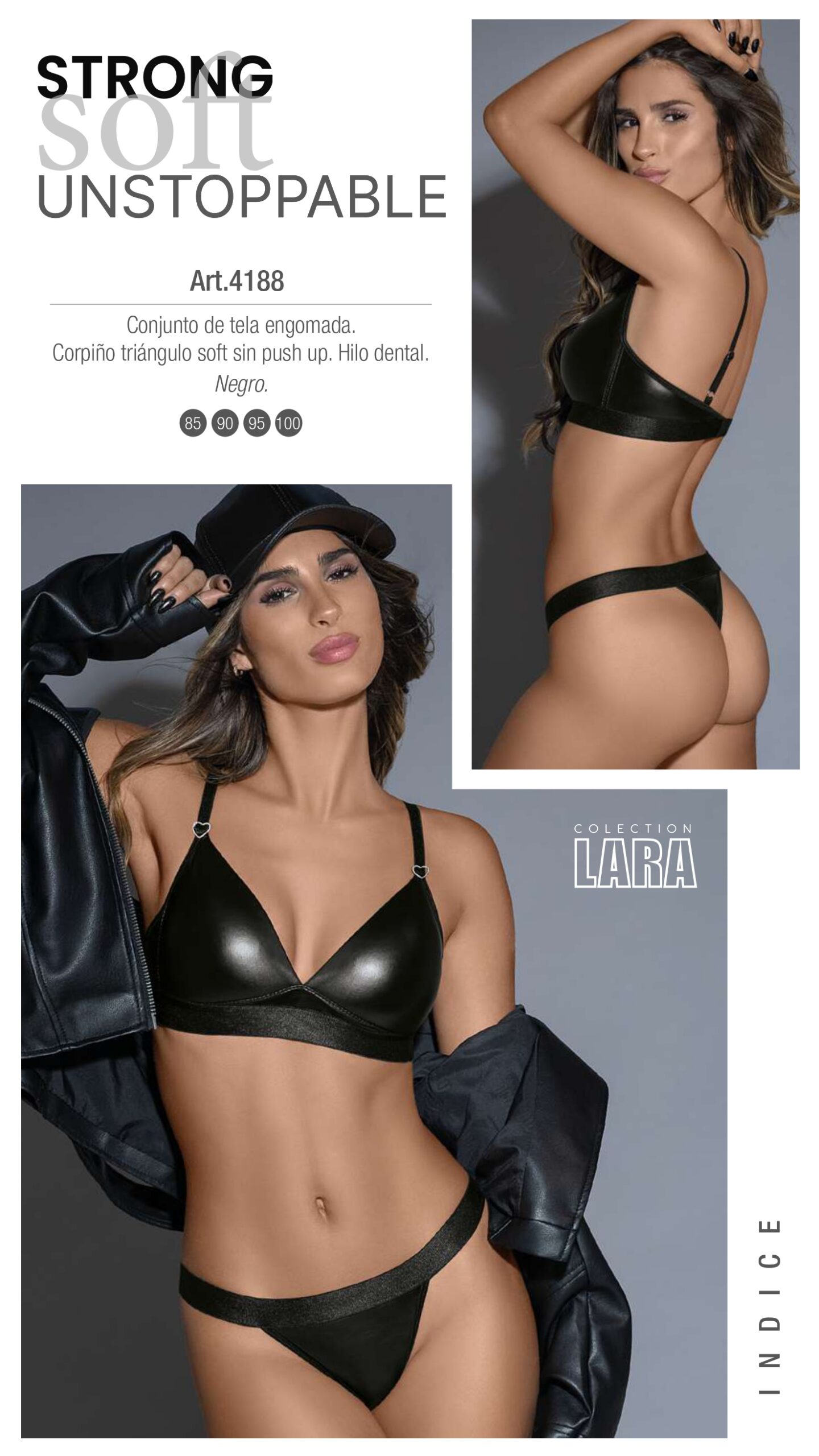 CONJUNTO DE TELA ENGOMADA. CORPINO TRIÁNGULO SOFT SIN PUSH UP. HILO DENTAL. LARA – Cod 4188