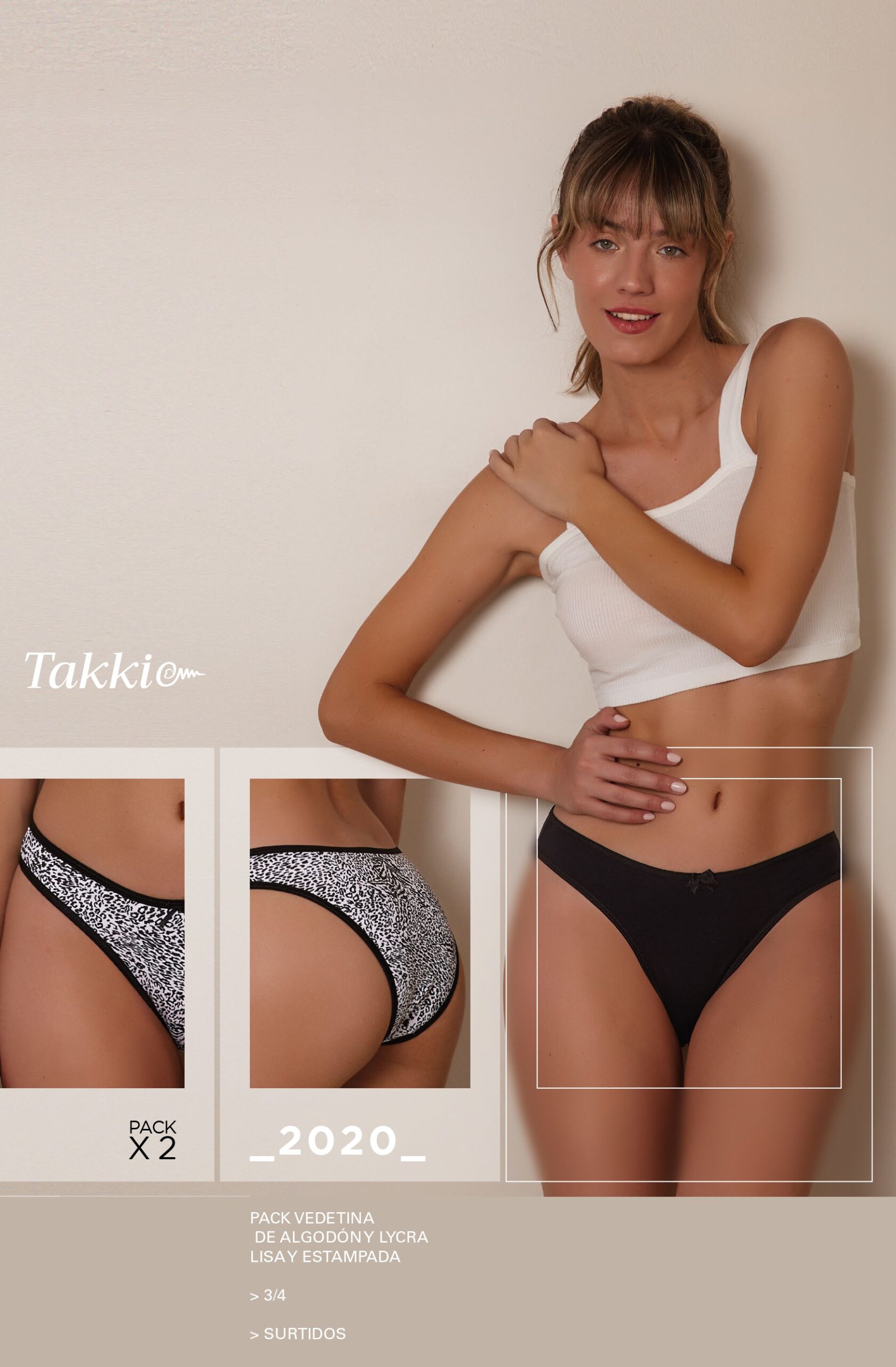 PACK X 2 VEDETINA DE ALGODÓN Y LYCRA LISA Y ESTAMPADA TAKKI - Cod 2030