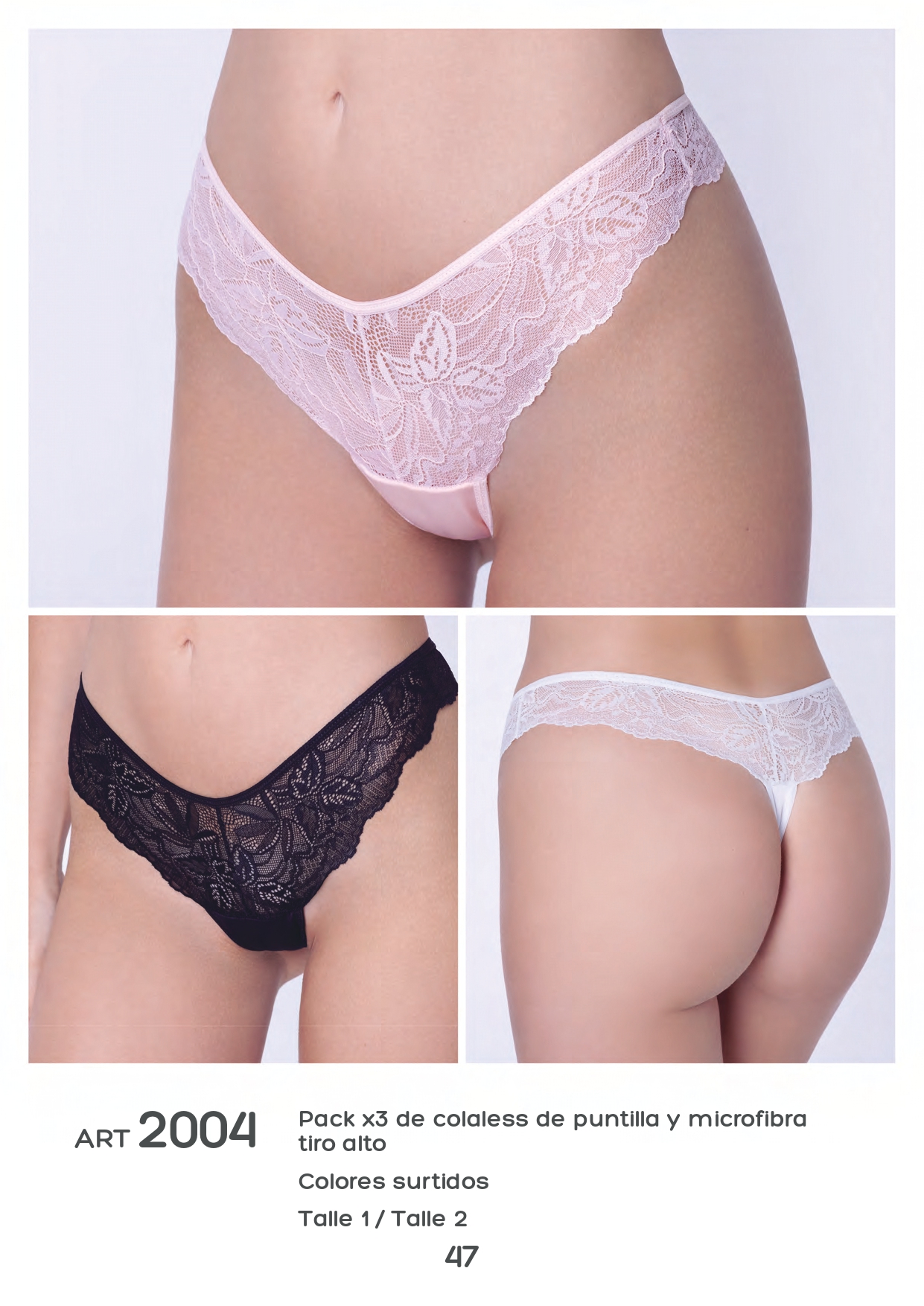PACK X 3 DE TANGAS CON BRETEL ANCHO DE MICROFIBRA Y PICOT UAILEE - Cod 2005