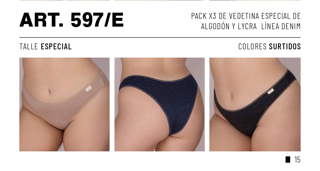 PACK X 3 DE VEDETINA ESPECIAL DE ALGODÓN Y LYCRA. LINEA DENIM FRASHE - Cod 597E