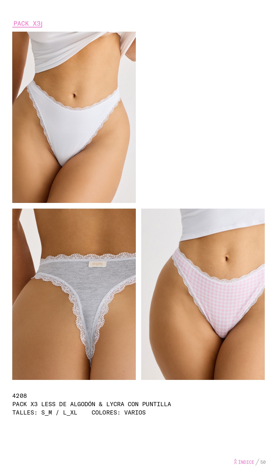 PACK X 3 LESS DE ALGODÓN Y LYCRA CON TIRAS BRIGITTE - Cod 4200