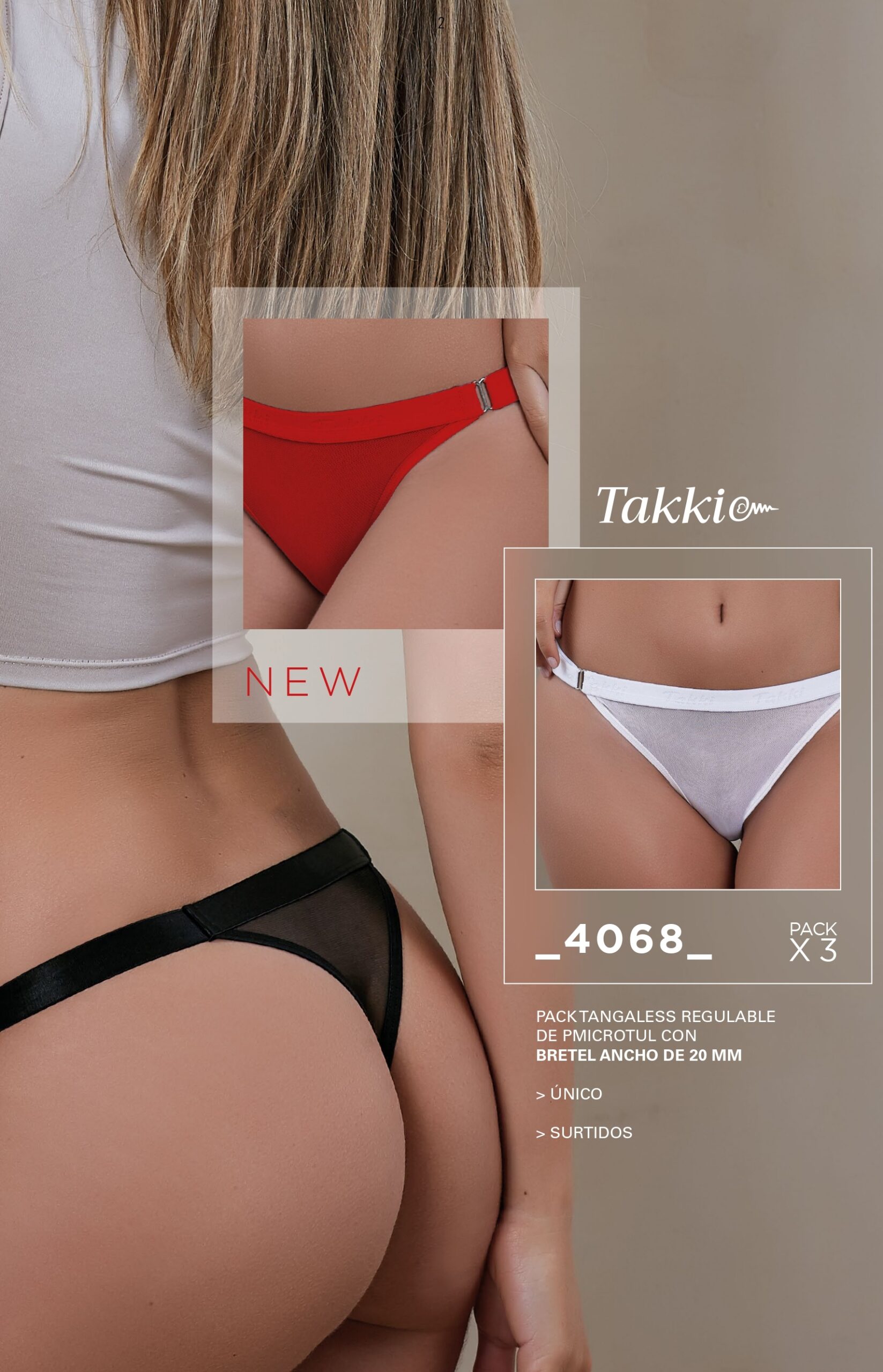 PACK X 2 TANGALESS REGULABLE DE PUNTILLA Y PLUMETI CON BRETEL ANCHO DE 30 MM Y ARGOLLA TAKKI - Cod 4072