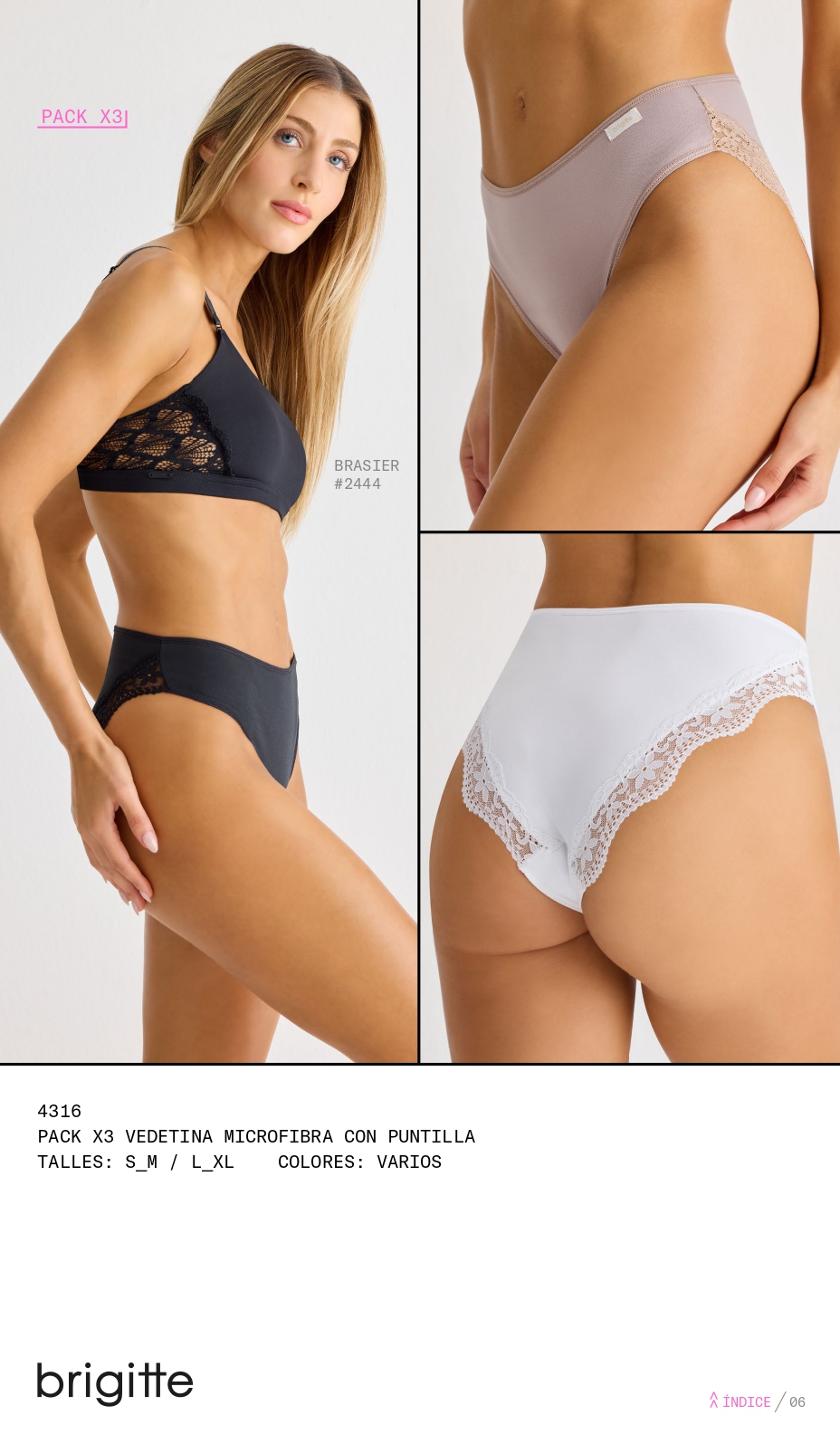 PACK X 3 VEDETINA DE ALGODÓN Y LYCRA CON PUNTILLA BRIGITTE - Cod 4210