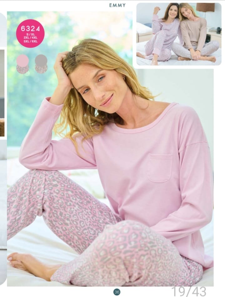 PIJAMA REMERA Y PANTALÓN DE JERSEY DE ALGODÓN EMMY - Cod 6318