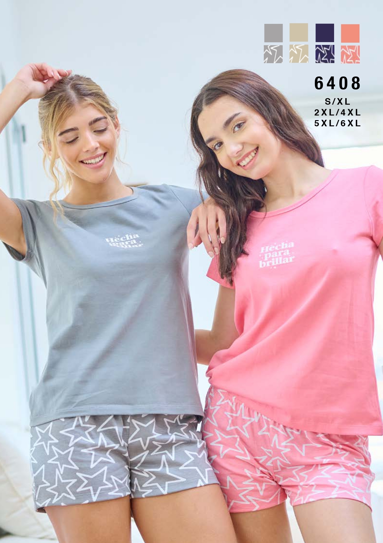 PIJAMA MANGA CORTA SHORT ESTAMPADO. JERSEY ALGODÓN LISO EMMY – Cod 6408