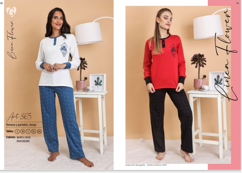 PIJAMA REMERA Y PANTALÓN DE JERSEY DE ALGODÓN GEORGETTE - Cod 362